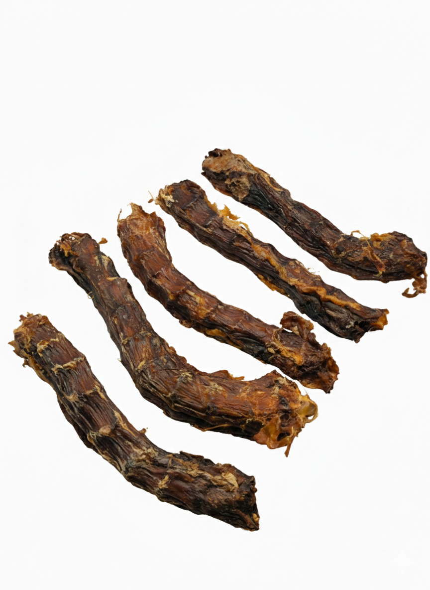 Entenhälse sind ein beliebter, naturbelassener Kauartikel, der Hunden jeder Größe und jedes Alters ein authentisches Geschmackserlebnis bietet. Bestehend aus 100 % reiner Ente, werden sie besonders schonend luftgetrocknet, wodurch sowohl die wertvollen Nährstoffe als auch das volle, herzhafte Aroma optimal erhalten bleiben.