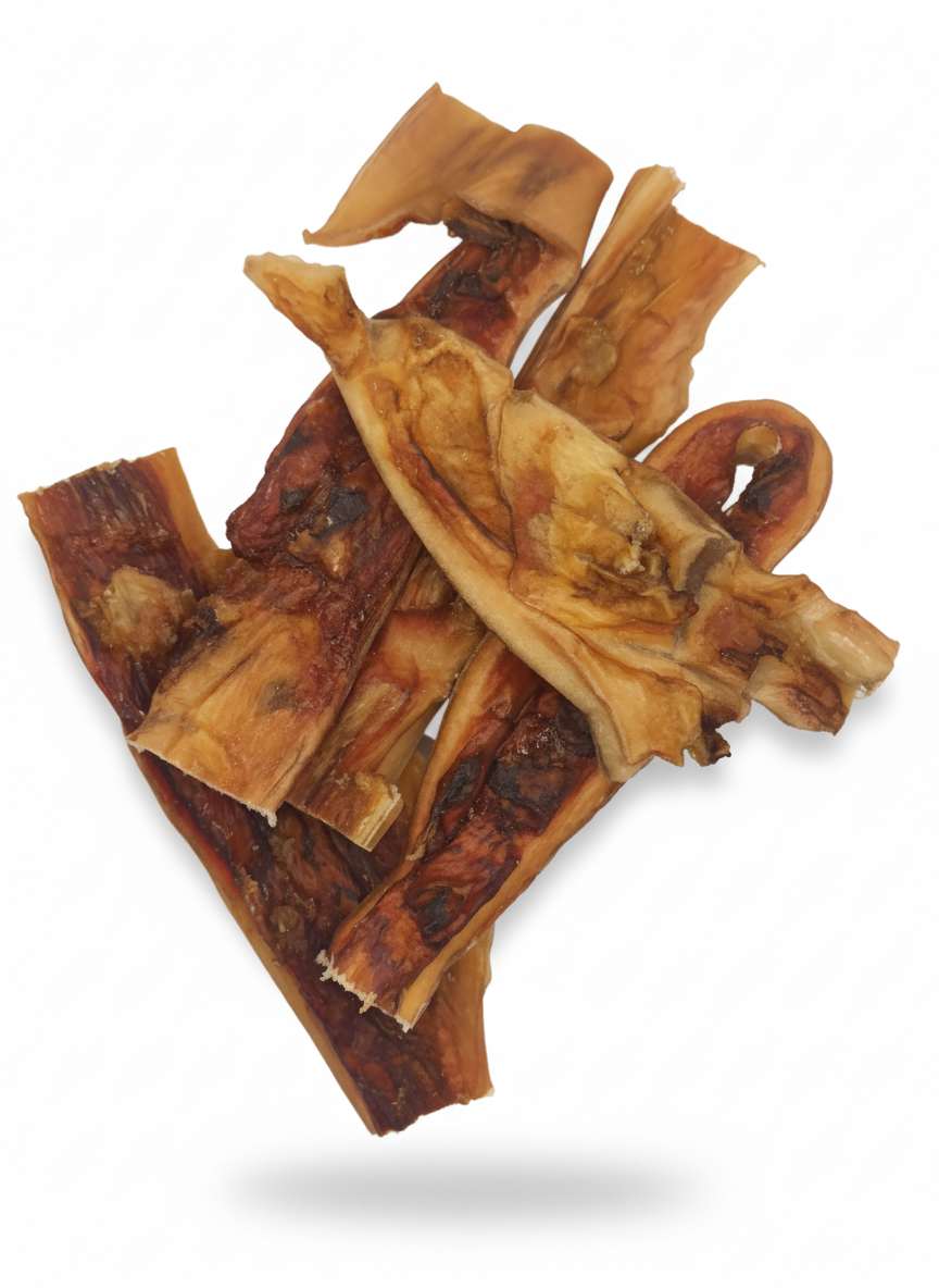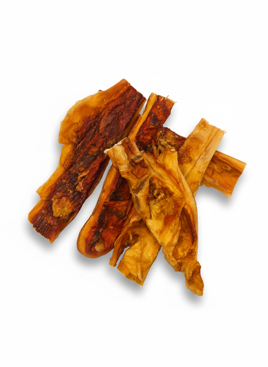 Getrocknete Rinderkopfhaut ist ein köstlicher und gesunder Kausnack für Hunde.